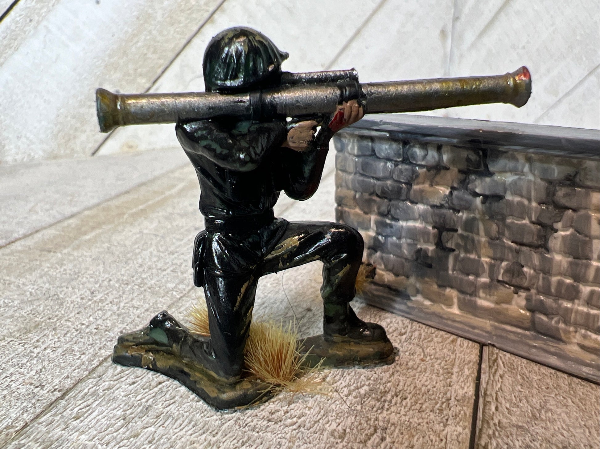 Custom Painted Army Man with Bazooka & Ceramic Resin Battle Wall Diorama